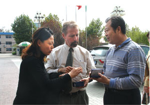 市教育局党委书记、局长张洪亮和到该校考察的加拿大客人亲切交谈