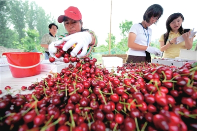 昨天,通州区西集镇红樱桃园艺厂迎来了今年的第一批客人,西集樱桃采摘节同时开幕。果园主人江女士表示,自己7年前包了这块地,现在已经进入第二个产果年头。“有机樱桃”不仅解决了自己的就业,季节性地雇用当地农民帮忙,也为农民增加了收入。