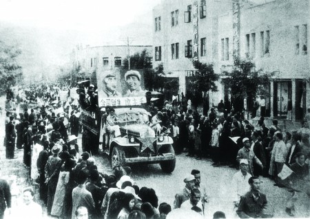 ▲兰州解放了,人民翻身了,市民举行庆祝游行活动。(资料图片)
