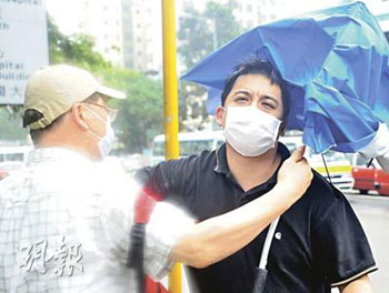 被告25日出庭时戴上口罩,向观众席上的父母点头打招呼,散庭后他以外套遮蔽面容,由父亲陪同离开。其父对记者拍摄大为不满,不断挥动雨伞,结果父子失足滑倒地上。事件扰攘约2分钟后,两人才成功登上的士离开。