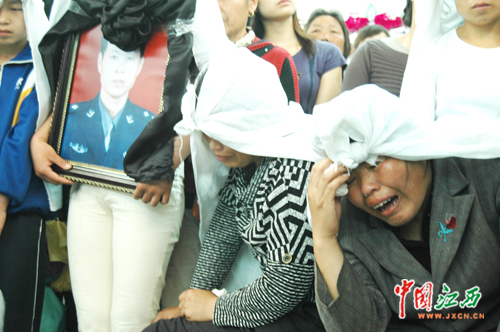 中国江西新闻网5月26日宜春讯(记者 何高德 报道)5月26日上午的宜春,天空中下着沉闷的大雨,全国公安系统二级英模、人民好警察黄启才同志追悼会在宜春殡仪馆举行。