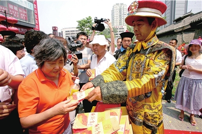 开仓放粮 长安街知事 2009.05.2704:51 关注 “皇帝”将粮食从粮仓中取出发给百姓。昨天,开仓放粮表演拉开了南新仓开仓节的帷幕。南新仓曾是明清两代京城储藏皇粮、俸米的皇家官仓。 本报记者欧阳晓菲 周宇摄影报道