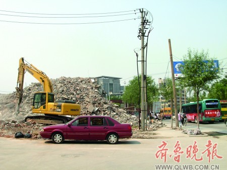 但在泉城广场东侧的舜井街工地,却是另外一番景象。在21日济南市召开迎全运城市环境综合整治领导小组工作推进讲评会议上,舜井街工地因施工无围挡而被点名。26日下午 1时许,记者看到,舜井街南头的建筑正在拆除中,两侧都没有围挡,只是在黑虎泉西路的北侧有几块围挡,其中一块围挡还倒在地上。