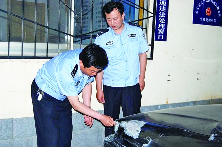 26日上午,记者在泰安市交警支队直属三大队见到了刚刚被办案民警从济南一家修理厂带回的肇事车。办案民警介绍,5月16日案件发生后,泰安市公安局成立了专案组,经过9天的紧张工作,调查走访附近20公里地方,排查近百家修理厂,终于找到了肇事逃逸车辆。并根据相关信息,找到了肇事司机王明。