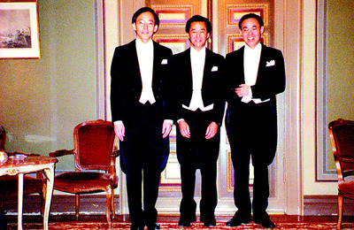 朱家一门兄弟三杰,左起为二哥朱棣文、小弟朱钦文、大哥朱筑文。 (美国《世界日报》/照片朱钦文提供)