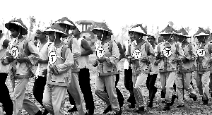 5月27日,河南郑州黄河滩上,一队“清兵”在黄河滩上进行抢险。当日,河南黄河河务局在郑州中牟举行黄河防汛实战演练,上阵表演的抢险队身着酷似“清兵”的衣服喊着高亢的黄河号子打下木桩,继承古代治理黄河之法,创新现代治黄之术。中举 摄