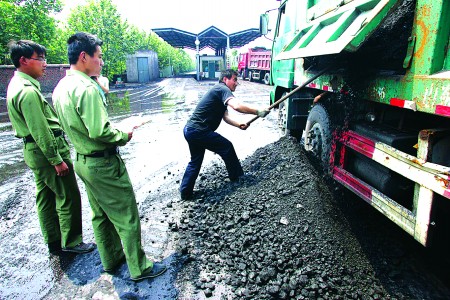 采访中胡主任告诉记者,他们为了进一步加强源头管理,日前交通部门已对该矿区内250多辆运输车全部进行了一次大检。在经过详细的核查后,发现有60 多辆运输车分别存在拼装、套牌、改型、无牌无证等问题。随即,按照规定将这部分存在问题的车辆全部清理出矿区运输行业。此外,他还谈道,目前唐口煤矿的日均产煤量仅可满足60-70辆车的运输能力。以往矿区经常出现200多辆运输车一起拥堵进矿争活干的现象。这样不仅影响了矿区正常的运作,还给治超人员的检查工作带来了不小的压力。为了杜绝这一现象,经研究后,交通部门决定对所有进矿运输车辆采取逐一编号喷码。然后,再按照每天矿区内的实际产煤量,按照编号循环通知业主进矿排队运输。这样,其他没有被通知的业主便可趁闲暇时带车到别处干活,此举不仅治理了矿区秩序,无形中也整合了运输资源。