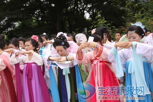 28日下午,50多名年轻人身穿汉服在翠湖祭祀屈原 本报记者 何志强 摄
