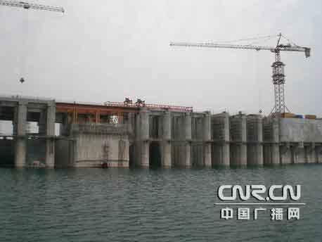 中广网北京5月30日消息(中国之声记者张蔚)汛期在即,在南水北调中线水源工程丹江口大坝加高工程建设工地,建筑工人们正加紧施工,确保在6月20日汛期到来之前,混凝土坝段坝顶全线贯通、坝顶门机具备闸门启闭条件,使大坝达到安全度汛要求。