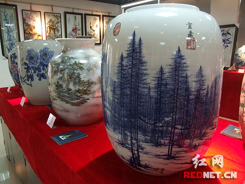 展览还主要展出了300余件景德镇陶艺大师黄美尧、程羊仔等人的作品,这些陶艺作品器形繁多,色釉斑斓瑰丽,其价值均在数万元以上。展览开幕式结束后,省内著名书画家张青渠、王国勋、蓝爱国、余唯学等,与景德镇陶瓷艺术大师合作,现场绘制、烧制陶瓷艺术品。
