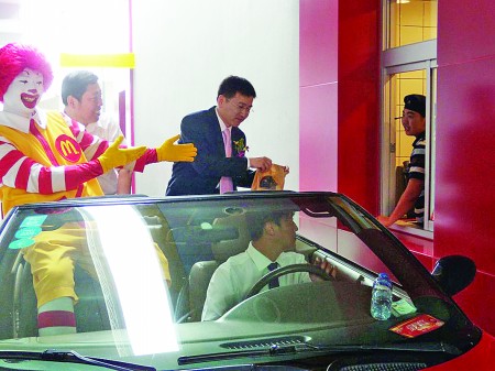 典礼完毕之后,记者跟随麦当劳餐厅高级督导王红实地体验了一下得来速餐厅的服务。