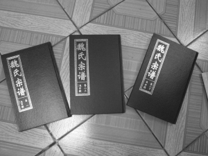 在魏老家中,今年50多岁的魏老向记者展示了3本魏氏家谱(见图)。魏老告诉记者,因为老谱残破无法再续,因此最近修谱改为印刷版本,在3本魏氏家谱上,详细记载了魏氏的迁移和各个支脉。据魏老介绍,魏氏本是河北人士,其中一支系从河北迁移到河南再到江西等地,之后逐渐迁至合肥,即为现在魏老一系。“迁移时,我们支系带有一谱,但真正的祖谱还在河北。”