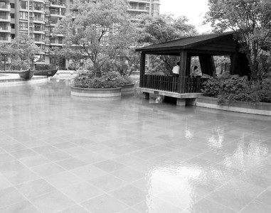 □金沙雅苑·未来街区小区漂亮的景观池中没有鱼儿游动,感觉缺少一分生气。 晨报记者 徐 翔 现场图片
