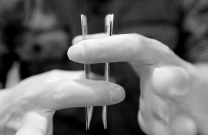 对着镜子,开始吧,记住,魔术的一大规则是一定要练得几乎能够骗过自己了,才能拿出去亮相,这是“一个魔术师的职业道德”,哈哈。