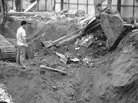 5月13日,在郑东新区正光路上,一建筑施工工地在挖化粪池时,把天然气管道挖断。记者在现场看到,该化粪池深约6米,长和宽各约7米,这么大的一个坑,边沿处没有任何防护设施,而且基坑周边堆满了土方。