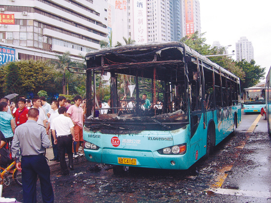 深圳公交车烧成“铁骨架”