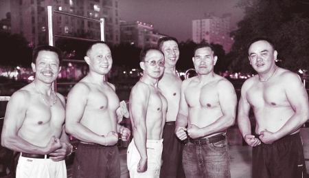 医生、教师、企业干部、高级工程师以及厅局级的离退休人员等。“退休后我们最大的心愿就是强身健体!”62岁的张锡厚老师是他们推选的健身队队长。他说,这群“运功员”10年来风雨无阻,每天早晨准时到这里来“打考勤”。张老师在介绍老王、老李的“新旧对比”时,这群头发花白的老小伙们干脆脱掉上衣,向记者展示他们健美的肌肉。“瞧,如今我们像不像施瓦辛格的身材!”