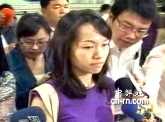 黄睿靓紧闭双唇不发一语,眼眶泛红,貌甚委屈