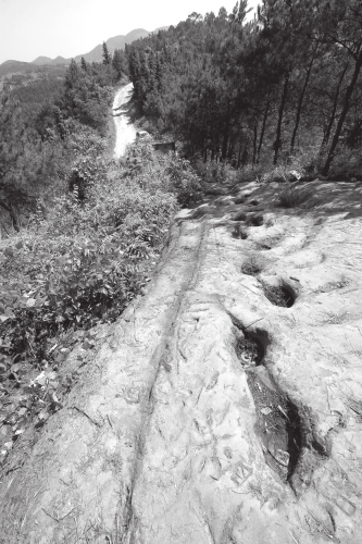 罗贯山山脉海拔约400米,当地村民将罗贯山称为龙贯山。从山脚一直向上,只要问到“犀牛脚印”,村民们都会马上指出所在位置。