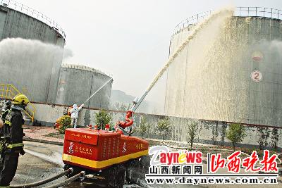 6月15日下午,太原市安全生产事故应急救援演练周活动启动,首场演练——玉门沟油库消防抢险救援演练,在万柏林区东社乡上庄村进行。经过110名消防员的全力抢险,20分钟后,大火被彻底扑灭。