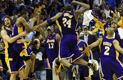 99比86,湖人总比分4比1战胜魔术,在奥兰多捧起总冠军奖杯。这是球队61年历史上的第15总冠军,距离从波士顿铩羽而归362天,距离洛杉矶的上个冠军整整7年,与底特律那耻辱性的失利相隔5年。《洛杉矶时报》高呼:“湖人回来了,以一种伟大的方式。”科比·布莱恩特和菲尔·杰克逊紧紧拥抱在一起,因为奥布莱恩杯,这两个曾经反目的男人拥抱了对方。