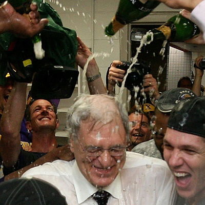 当弟子在更衣室里进行香槟大战时,菲尔·杰克逊躲到了角落,他不抢弟子的风头,也不想全身被香槟淋湿。就像前NBA中锋莫宁批评他时说的那样,“他只是露了个脸,然后把所有的活儿都推给科比·布莱恩特。”杰克逊的回应是:“考虑到说这话的人在NBA打了15年球,那还真是不错的评价。科比包揽了大部分的工作,而我不过是坐在椅子上。”