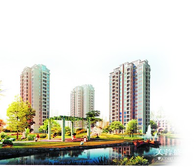 玉潭新城生态住宅小区规划效果图。
