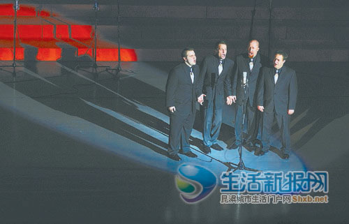 来自美国的超音波四人合唱组合出现在昨晚的合唱盛会中 首席记者 符光周 摄