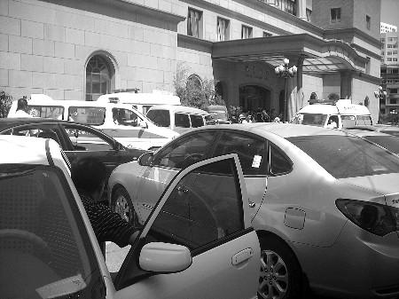 停放的车辆太多,毓璜顶医院大院内两辆救护车被“夹”住了。 (资料片)