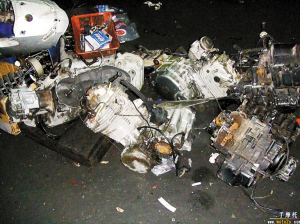 他告诉记者说,他以前接触过的一个老板,今年4月收了辆奥迪事故车,拆了之后卖配件至少赚1万元。姜先生说,深圳的配件一部分来自欧美国家、日本以及中国香港的专业拆车场。香港渠道主要是从香港某二手汽零配城进的货。那里的零件铺分为两大类:第一类是“报废车店铺”,主要收购本地报废车,卖出部分可用零件,其他则当作废铜烂铁卖给五金铺。姜先生指出,这些配件质量较差,内地商家很少选择这类店铺进货。第二类是“翻新零件铺”,这个是主要的进货渠道。据了解,“翻新铺”的零件大部分来自日本,当地商家在日本选购大量较新的(使用寿命为25年)二手零配件,到香港后有专人分门别类,质量相对有一定保证,价格也略贵;一部分来自内地的事故车,价格视成色而定,一般低于进口件。