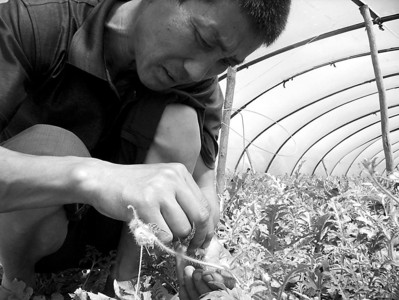 瓜农李师傅现场演示“对花”过程
