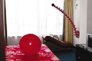 五十多平方米的房间内,灯光温馨暧昧,一张大红床格外引人注目,情趣用品一应俱全。记者看到,跟一般的酒店里陈设不同的是,房间里有很多奇形怪状的家具。据周某介绍,除了床是电动床以外,还有欢乐椅、情趣球、S形沙发等。“这些可不是体操运动器材,而是情趣酒店的特别设施,专门供夫妻情侣性生活用的。”