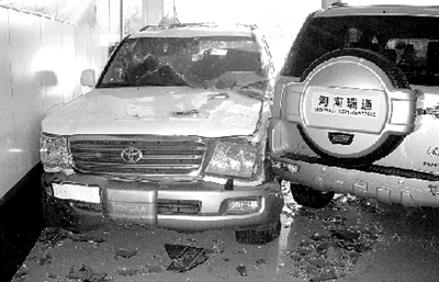 昨日上午9时37分许,郑汴路与玉凤路交叉口西北角,一辆丰田越野车一头冲进了汽车展厅。“玻璃全碎了,太吓人了,跟电影里的情景一样!”李女士说,她当时在附近办事,突然听到“砰”的一声巨响,越野车一下子就撞破玻璃冲了进去。
