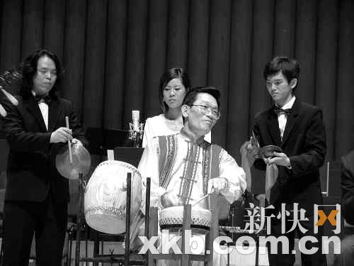 上周,黄唯奇和多名同事及80多名学生排练了4个多月的岭南鼓乐名曲独奏音乐会终于与观众见面。只见他穿起唐装,挥动鼓槌,在广东星海音乐学院大学城校区的音乐厅内,上演了国内首个集中岭南三大乐种的个人演奏会。