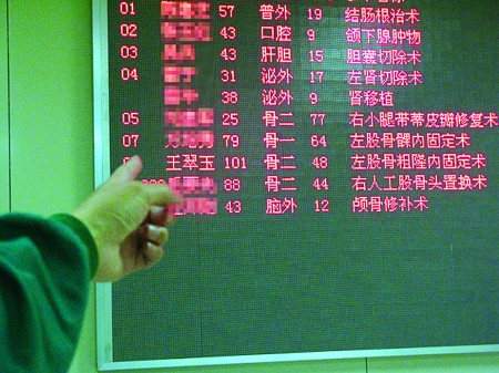 两个多小时后,王老太太的手术成功完成。记者在手术室的电子屏上看到,等待手术的人中,王老太太是年龄最大的。手术室的医生告诉记者,五六年前他们成功治疗过一个104 岁的老人,王老太太是他们近几年中接收的年龄最大的病人。因为年龄较大,手术后王老太太被送到医院重症监护室里进行恢复治疗。
