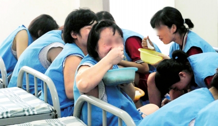 昨日早晨6点半,姑娘们准时起床,然后有秩序地去洗漱。早饭在7点钟被工人准时送到各病室,稀饭、馒头,姑娘们在座位上津津有味地吃着。