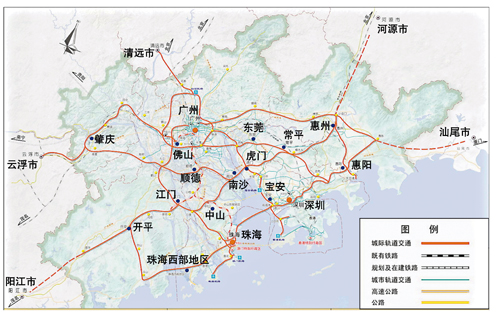 三环:由穗莞深、深圳至珠海、广州-佛山-江门-珠海、佛山-东莞四条城际线组成的环珠江口的大环线;