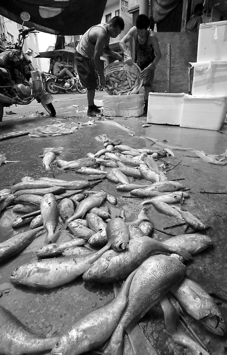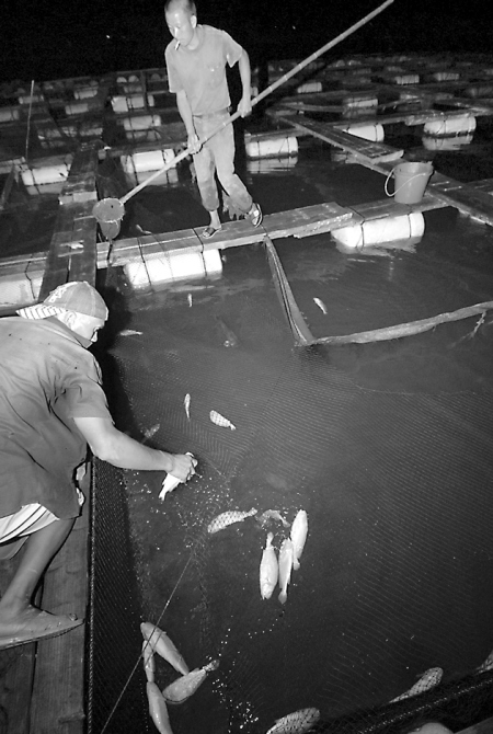 但死亡并没有停止。昨日凌晨零时,白沙角海区近千家渔排上,还是灯火通明,上万人忙着捞网箱里濒临死亡的大黄鱼,溪南镇上许多店铺关门,他们都被亲戚朋友请去渔排上帮忙。