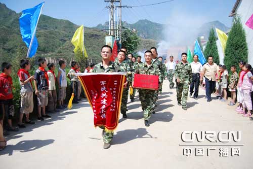 在广大官兵的共同努力下,工程取得一个个胜利,施工生产捷报频传, 6月30日,总干渠二闸门段改建工程的完成,标准着全长32.165公里的红旗渠总干渠改建工作全部完工,将按期实现全线通水,红旗渠真正成为了林州人民的“放心渠”、“幸福渠”。工程完工了,水电官兵又打起背包奔赴另一个工地,林州当地群众敲锣打鼓,载道欢送,并为官兵送上了饱含深情的拥军鞋垫。