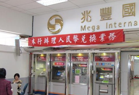 台湾“中央银行”公布14家金融单位,1240家分行可供申请兑换人民币业务,另外还有15家百货公司与46家旅馆可购买人民币。14家可从事兑换人民币业务的金融单位包括:台湾银行、合作金库商业银行、台湾土地银行、中国信托商业银行、元大商业银行、国泰世华商业银行、兆丰国际商业银行、台湾中小企业银行、彰化商业银行、上海商业储蓄银行、第一商业银行、台北富邦商业银行、华南商业银行以及金门县信用合作社。