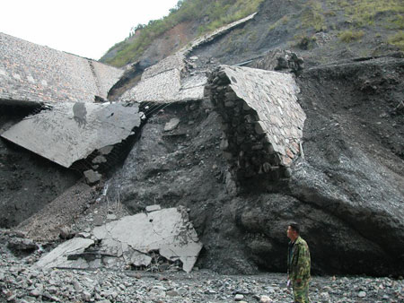 据初步统计,截至今天,泥石流已经损害了金源乡玉米、水稻等农作物3515亩,89户农家受冲击,倒塌了28间农房,6个地段61公里的道路被冲断,直接经济损失达到了500万元。