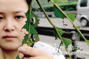 本报讯 成群的虫子在行道树间飞舞,所到之处叶子全部被啃坏。家住渝北两路的邓小姐最近坐车经过机场高速路时,发现部分行道树遭到严重虫害。