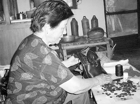 记者提出看看她缝补衣服的工具时,老人顿时来了精神,到里屋拿出一个小包。这个黑色的小皮包是她给矿工缝补衣服时用的,已经有29年历史。包上密密麻麻补过的痕迹也成了她劳动的见证。侯秀荣从包里取出一个药瓶子,里面装满了各种各样的针,还有一大把黑扣子、 黑线团等。 侯秀荣说,这些都是她女儿从泰安批发回来的,一次仅扣子就要批十余斤,线团也要批30个左右。数完这些宝贝,老太太又给记者介绍补丁的来源,侯秀荣说,由于矿工服很厚,家里一般纯棉的布料都不能当补丁,她就每天坚持去洗衣房“捡”一些扔掉的破工作服,把这些攒起来用。平时工人破得不能穿的衣服,她都会耐心地挑出来,洗干净了再次利用。