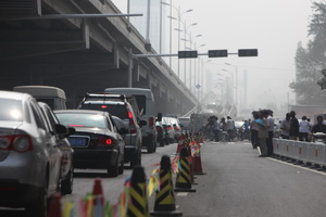 ■槐安路通车后,槐安路与维明街交叉口的上桥处经常出现严重堵车现象