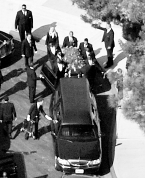北京时间7月7日晚,流行音乐之王迈克尔·杰克逊的私人追悼会于公众悼念活动之前2小时,在“森林草坪”墓园举行。葬礼谢绝媒体,只有杰克逊的家人和少数朋友出席。