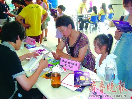 众多家长带孩子前来咨询报名。记者崔滨摄