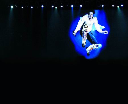 活动中,斯台普斯中心舞台四周大屏幕滚动播放杰克逊各个时期的照片和录像片段。他的金色灵柩覆盖鲜花,安放在舞台前方。