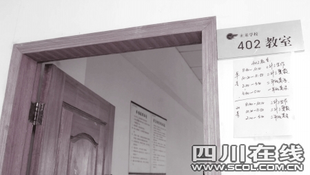 记者前往补课地点了解情况。这家培训学校位于抚琴西路三友百货背后一幢小楼里,在底楼入口处挂着红色招牌,上面写着:“成都万卷教育培训学校”。整个4楼都属于这家学校,学校教室都是由办公室改造而成,一共有4间。透过墙壁,能隐约听到里面有老师讲课的声音。