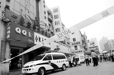 发生命案的是合肥市闹市区步行街上。10日中午记者来到事发地点,事发办公楼下已经拉起了一根长约200米的警戒线,一楼道入口处至少有6辆警车,近20名警察正在现场维持秩序和参与调查。