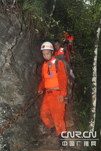 消防官兵穿越危险重重的山路进行搜救李进发摄影